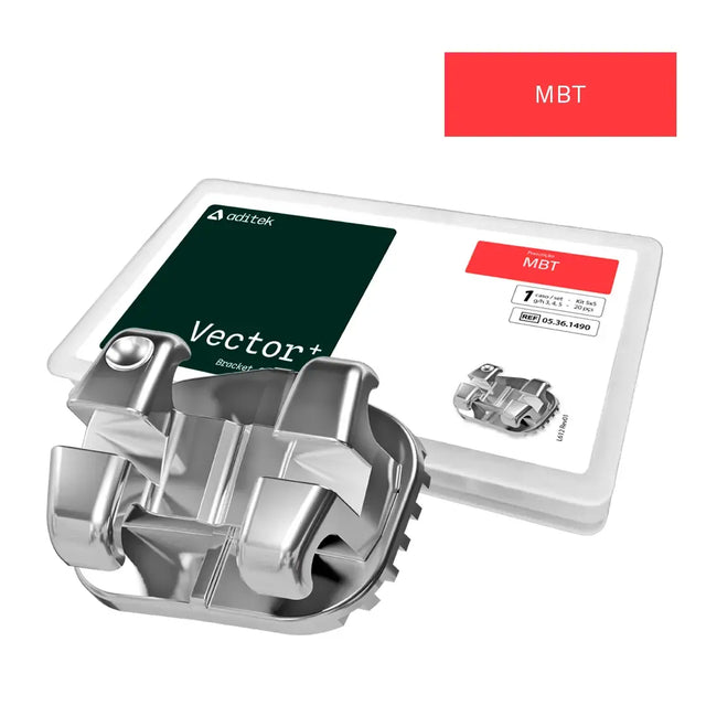 Aditek Vector+ 0.022 MBT Hook 3,4,5 bracket system delivers exceptional precision, comfort, and control for modern orthodontic treatments. Engineered by Aditek Orthodontics, Vector+ brackets feature a low-profile, anatomical design that ensures excellent patient comfort and efficient tooth movement throughout treatment.