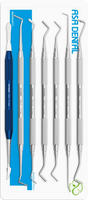The ASA Dental Set of 7 Composite Instruments is a professional kit designed for the precise placement, shaping, and contouring of composite restorative materials. Each instrument is crafted with smooth, non-stick working ends to prevent material adhesion and ensure flawless restorations.