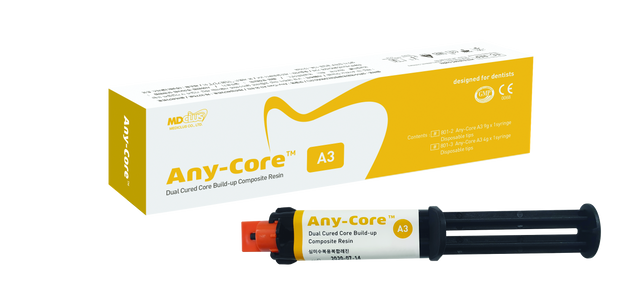 Any-core is a dual-cured composite material for the fabrication of core build-up and post cementation