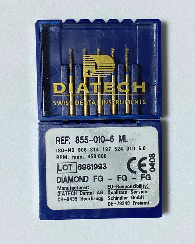 The Diatech Tapered Round End Diamond Bur – Gold is designed for precise tooth preparation and fine finishing in restorative and prosthodontic procedures. Featuring a short working length for enhanced control and a gold diamond coating (fine grit) for smooth, accurate cutting, this bur delivers excellent clinical precision when used with high-speed handpieces.