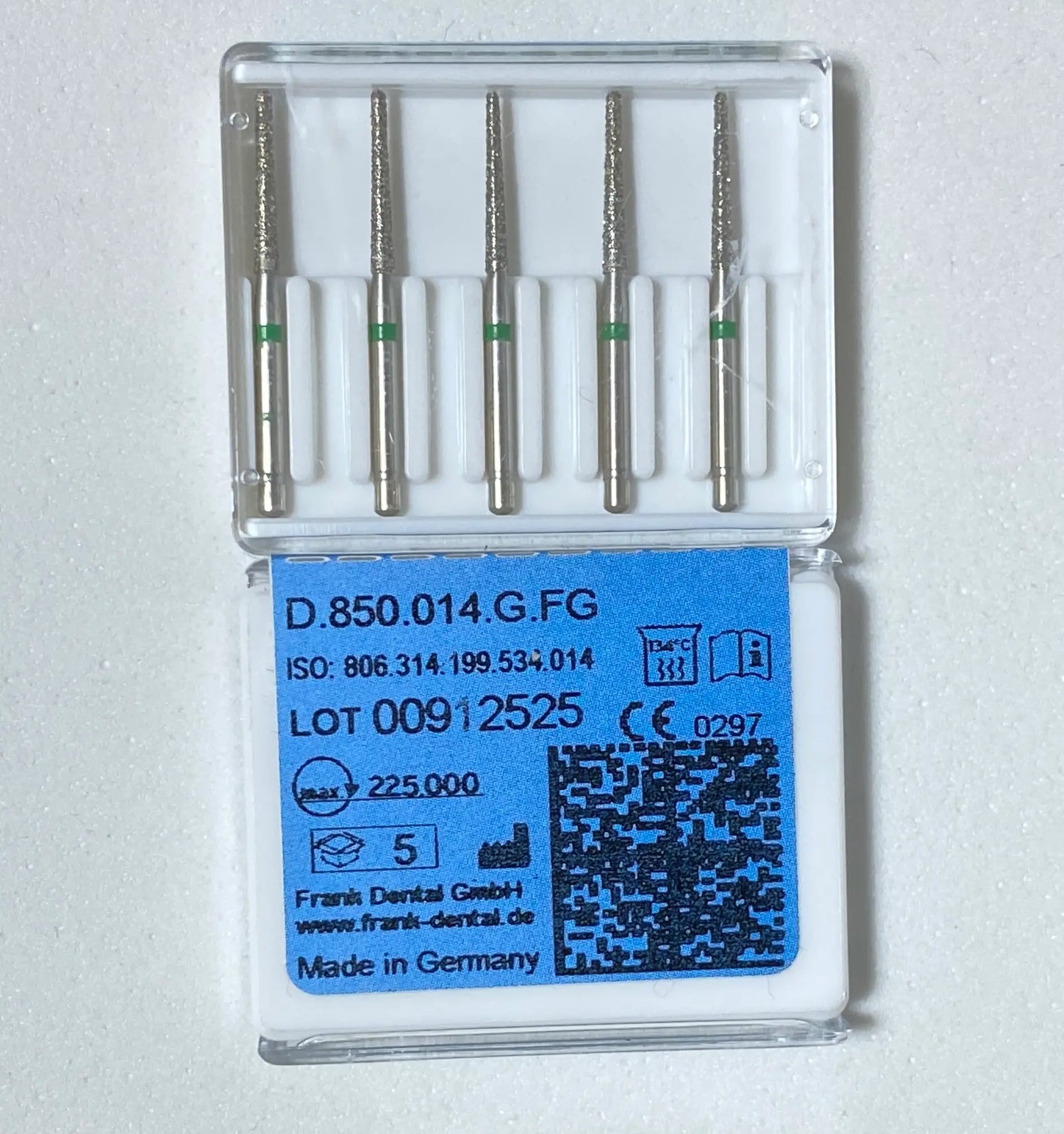 Franke Dental D.850.014.G.FG HIGH SPEED - Diamond tapered Round end- Green - Box of 5 Pieces is backordered and will ship as soon as it is back in stock.