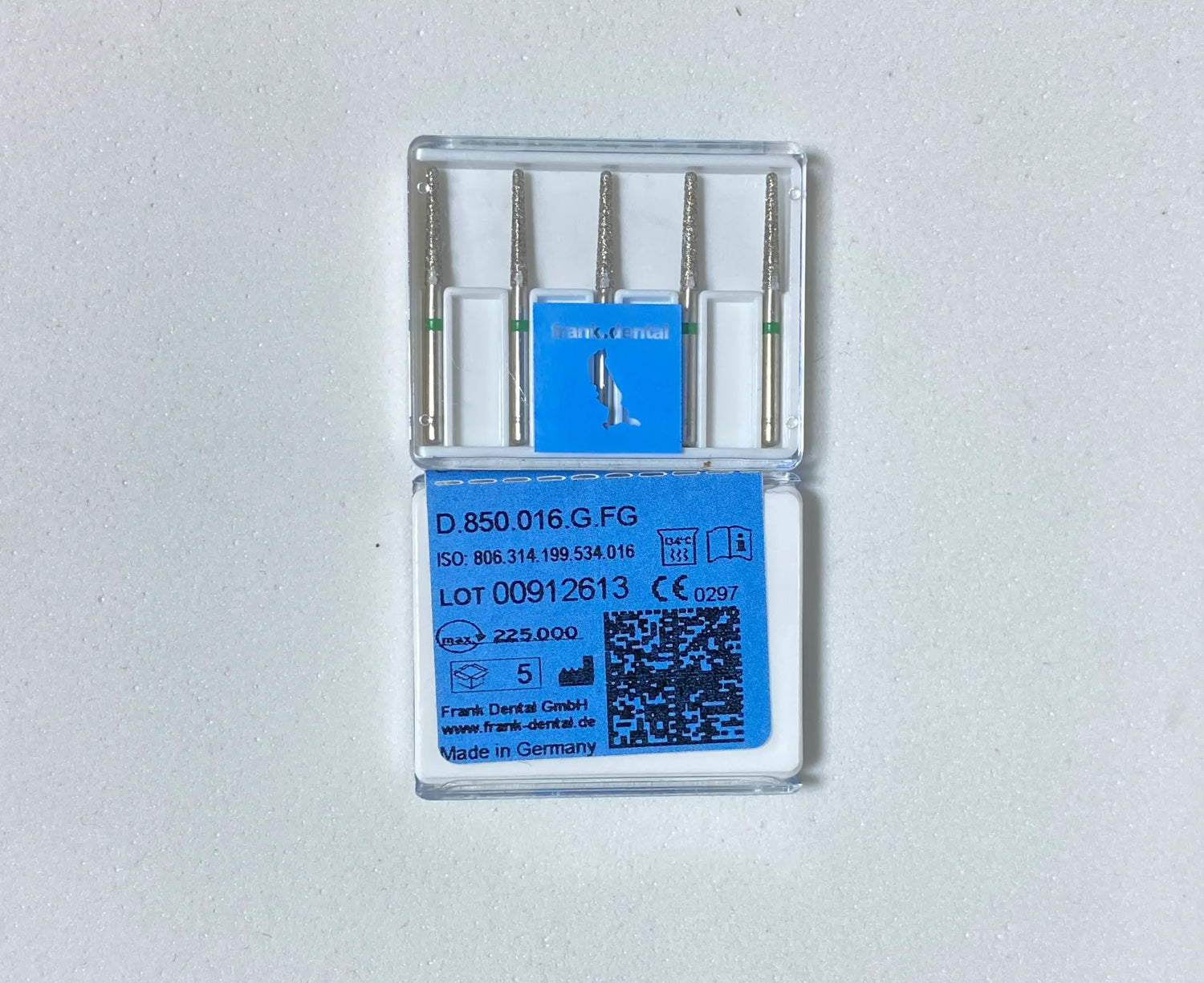 Franke Dental D.850.016.FG-HIGH SPEED-Diamond tapered round end-GREEN - Box of 5 Pieces is backordered and will ship as soon as it is back in stock.