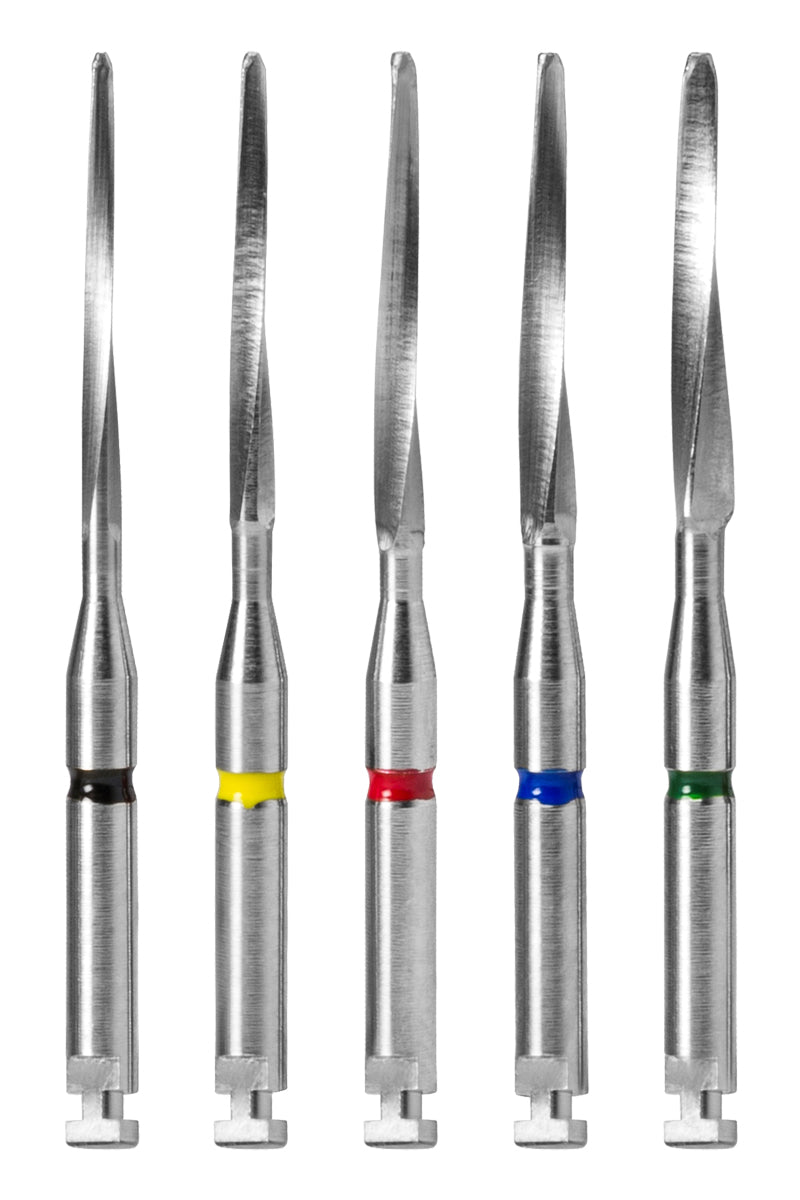 Their special quality is having a large emergency coronal diameter compared to the relatively small apical diameter: this design stabilizes the prosthetic core much more effectively, making the restoration more resistant to the displacing forces of mastication.