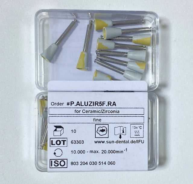 Sun dental P.ALUZIR5F.RA Polisher for zirconium & Ceramic - CUP - Fine - Box of 10 Pieces is backordered and will ship as soon as it is back in stock.
