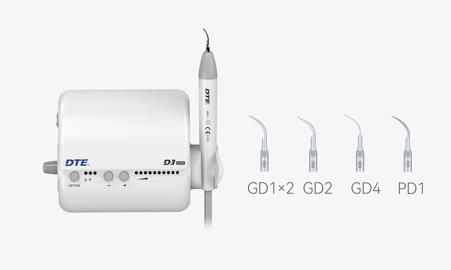 Detachable handpiece with light enables better visibility Microcomputer control, automatic frequency tracking Automatic degenerative feedback and constant power output brings rather comfortable scaling. Voltage input: ~220 V 50 Hz Main unit input: ~24 V 50 Hz 1.3 A Output power: 38 VA Frequency: 28 kHz ± 3 kHz Water pressure: 0.1 bar~5 bar(0.01 MPa~0.5 MPa) Main unit weight: 0.66 kg Transformer weight: 1 kg Dimensions: 198 mm × 134 mm × 80 mm