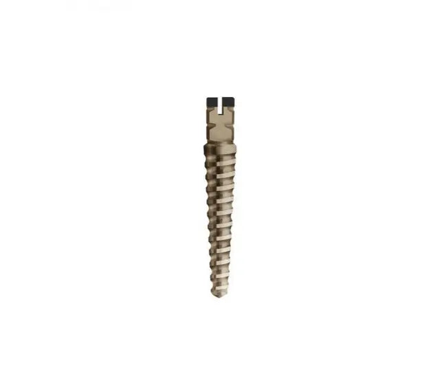 - Titanium conical post is installed in the tooth canal for the restoration of destroyed hard tissues.