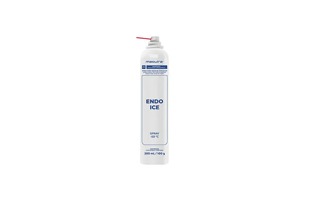 Maquira Endo Ice is a cold spray refrigerant specially formulated for pulp vitality testing during endodontic diagnosis. It provides an immediate cooling effect when sprayed on a cotton pellet and applied to the tooth surface, allowing dental professionals to accurately determine pulp sensitivity. The spray is safe, fast-acting, and highly effective for use before root canal treatments or restorative procedures.