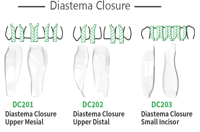-The Diastema Closure matrices are for creating new and exaggerated emergence profiles, closing diastema larger than 1mm and for large black triangles.