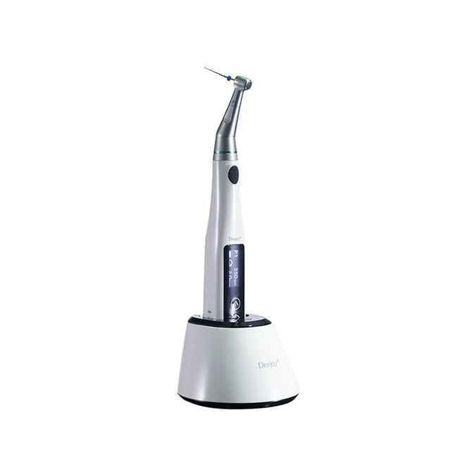 The Denjoy Endo Motor Wireless Ai-Mate with Apex Locator is a high-performance, cordless endodontic motor designed for precise and efficient root canal preparation. Integrating an apex locator, this system allows clinicians to accurately determine working length while performing rotary instrumentation, improving safety and treatment outcomes. Its wireless design, adjustable speed and torque, and ergonomic construction make it ideal for modern endodontic practice.