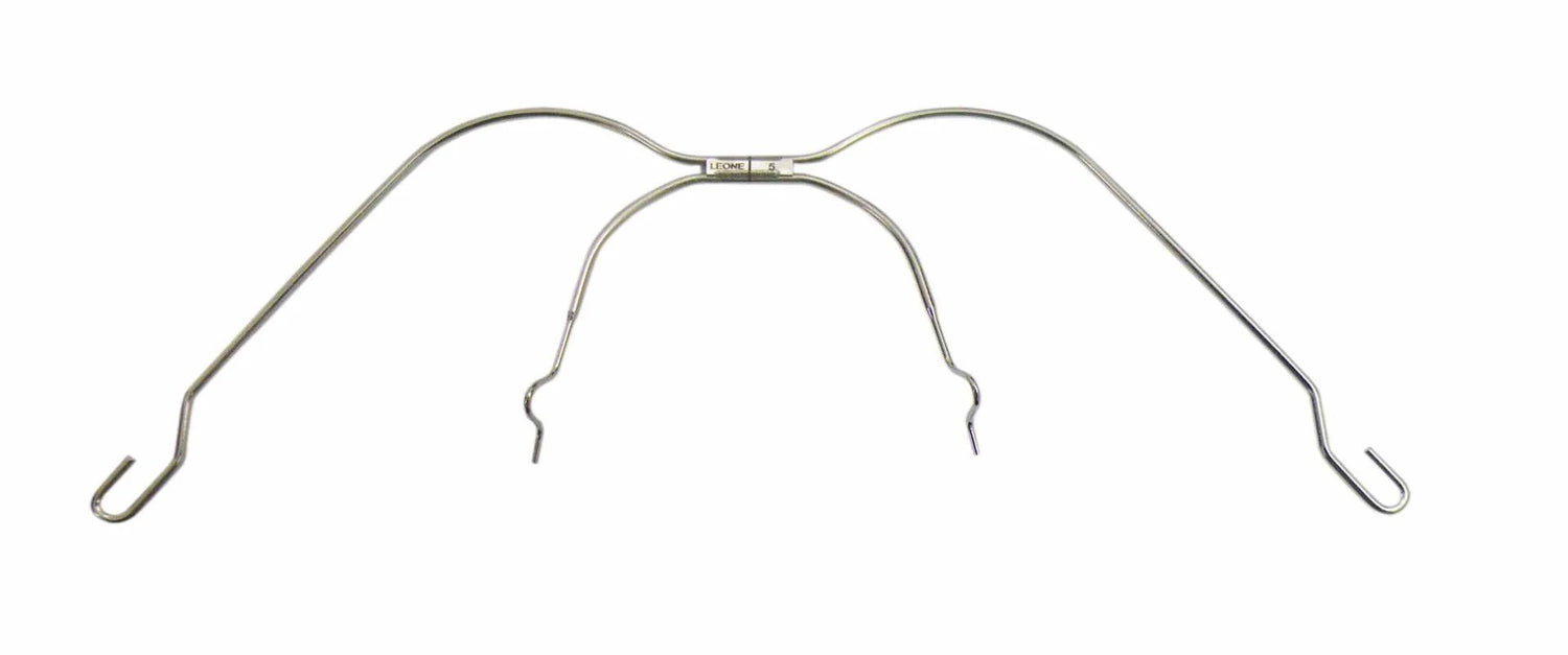 The Leone Facebow is a precision orthodontic appliance used to transfer extraoral forces from headgear to the teeth and jaws. Made from durable, medical-grade stainless steel, it ensures accurate fit, comfort, and effective force distribution for orthodontic treatments. Ideal for use with headgear appliances, it helps achieve controlled tooth movement and proper jaw alignment.