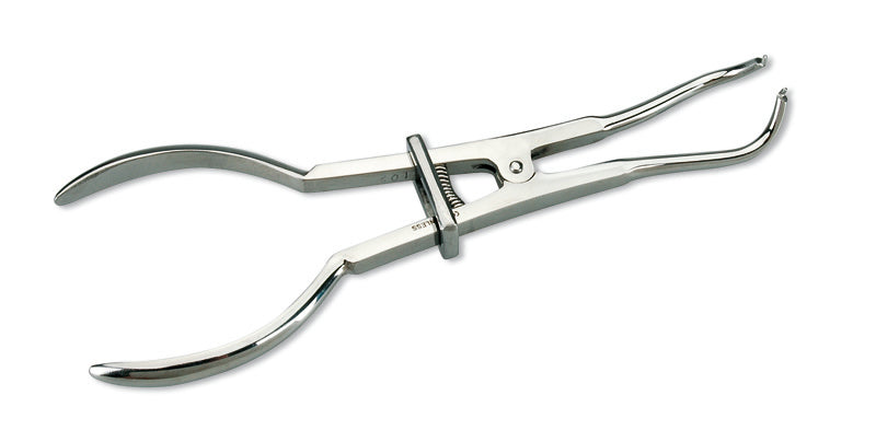 Rubber Dam Forceps or Rubber Dam Clamp Holder is used to place the clamps in position.